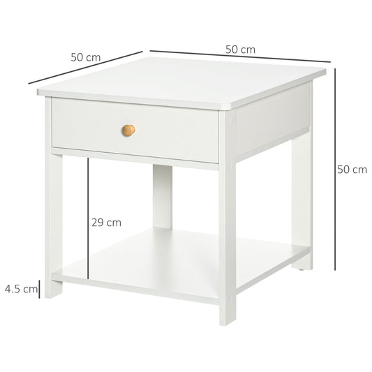 HOMCOM Bedside Table with Drawer and Bottom Shelf, Square Side End Table for Bedroom, Living Room, White