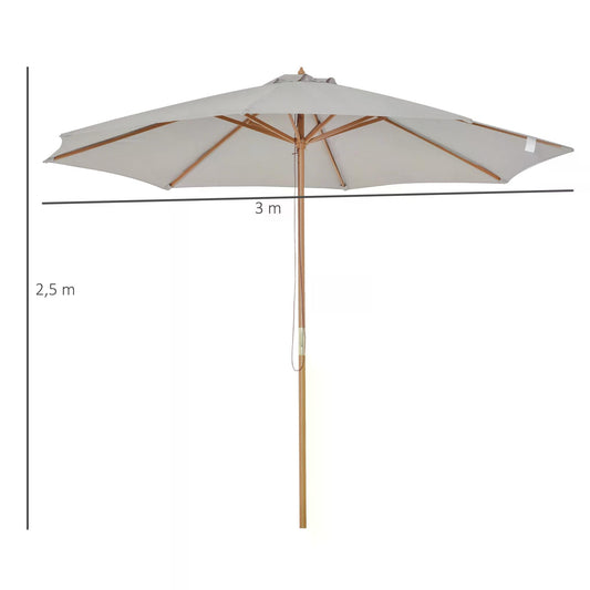 Outsunny 3m Fir Wooden Garden Parasol Bamboo Sun Shade Patio Outdoor Umbrella Canopy, Grey