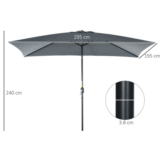 Outsunny 3x2m Patio Parasol Garden Umbrellas Canopy with Aluminum Tilt Crank Rectangular Sun Shade Steel, Dark Grey