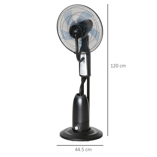 HOMCOM Pedestal Fan with Water Mist Spray, Humidifying Misting Fan, Standing Fan with 3 Speeds, 2.8L Water Tank, Timer and Remote, Black