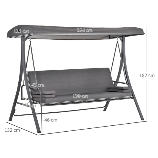 Outsunny Outdoor 2-in-1 Patio Swing Chair Lounger 3 Seater Garden Bench Hammock Bed Adjustable Canopy with Cushion, Pillow, Grey
