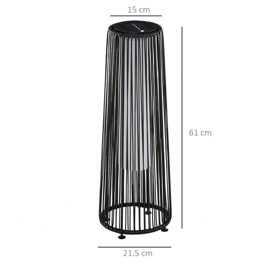 Outsunny Patio Garden Solar Powered Lights Woven Resin Wicker Lantern Auto On/Off for Porch, Yard, Lawn, Courtyard, Black