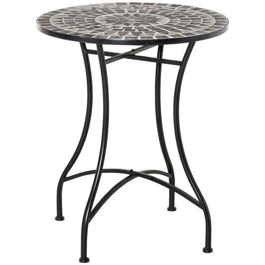 Outsunny Round Mosaic Tabletop Garden Table - Grey/Black