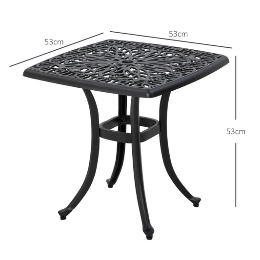 Outsunny Cast Aluminium Bistro Table, Outdoor Square Side Table with Umbrella Hole, Garden Table for Balcony, Poolside, Black