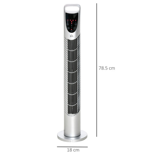 HOMCOM Tower Fan Oscillating 3 Speeds 3 Winds 40W with Remote Control Timer Moving Head Quiet Operation Home Office Bedroom Silver - 78.5H cm