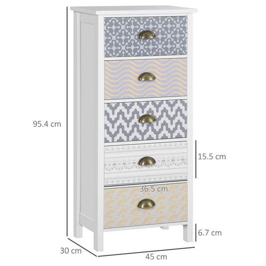 HOMCOM Chest of Drawers, 5-Drawer Tallboy Dresser with Metal Handles, Storage Cabinet Unit for Living Room, Bedroom