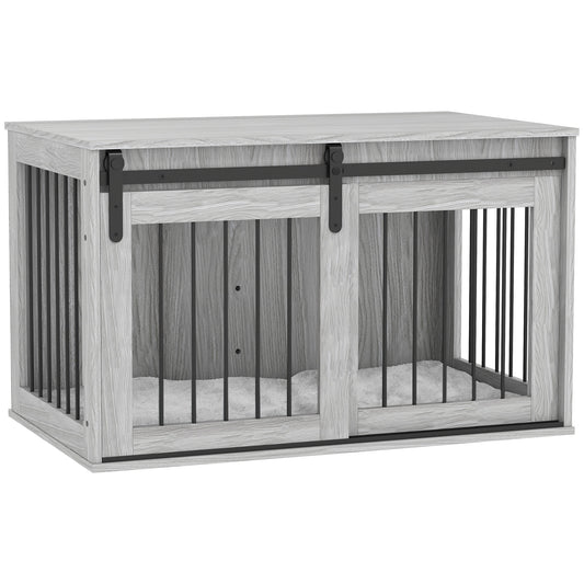 PawHut 98cm Dog Crate Furniture with Removable Cushion for Large Dogs - Grey
