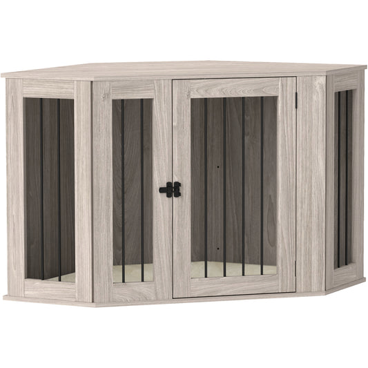 PawHut Indoor Dog Crate Furniture End Table with Soft Washable Cushion, Lockable Front Door, for Large Dogs - Grey