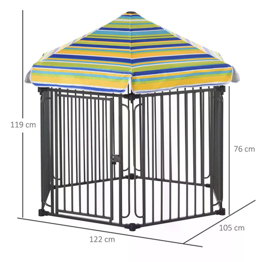 PawHut Outdoor Dog Kennel, Dog Run with UV-Resistant Canopy & Lockable Design, Metal Playpen Fence for Small and Medium Dogs, 120 x 120 x 138 cm