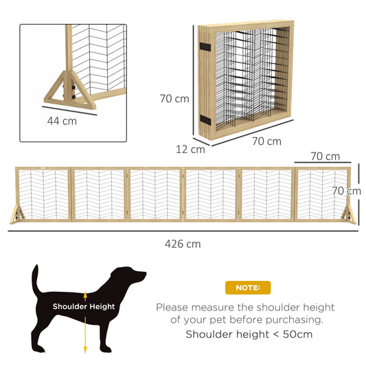 PawHut 6 Panels Pet Gate, Wooden Foldable Dog Barrier w 2PCS Support Feet, for Small Medium Dogs - Natural Wood Finish