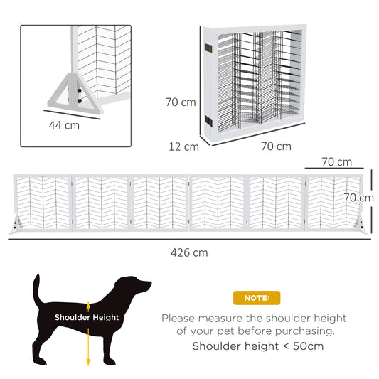 PawHut 6 Panels Pet Gate, Wooden Foldable Dog Barrier w 2PCS Support Feet, for Small Medium Dogs - White