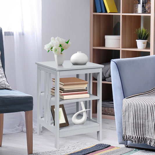 3-Tier Bedside Table with Storage Shelves for Living Room Bedroom-White