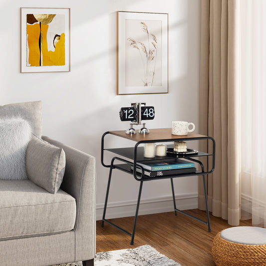 2-tier Nightstand Bedside End Sofa Coffee Table for Bedroom Living Room-Brown