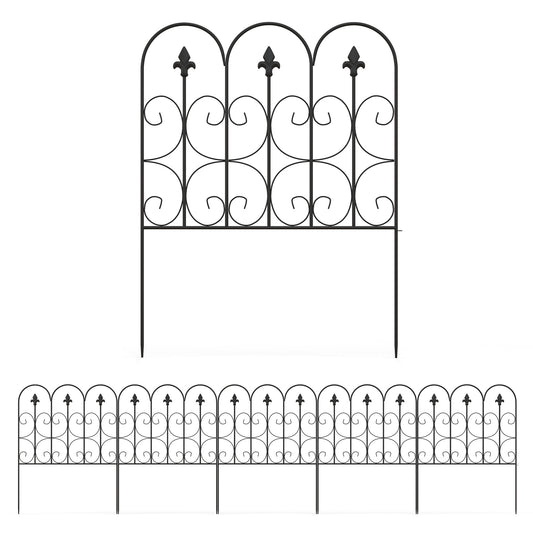 Outsunny Decorative Garden Fencing, 5PCs Outdoor Picket Fence Panels, Rustproof Metal Wire Landscape Flower Bed Border Edging Animal Barrier, Black