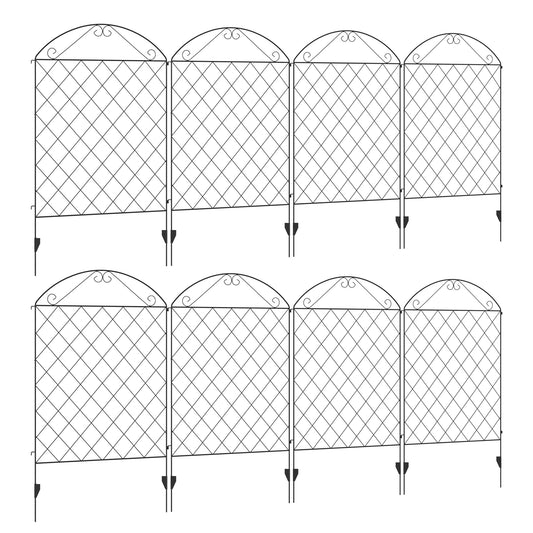 Outsunny Decorative Garden Fencing, 8PCs 43in x 23ft Outdoor Picket Fence Panels, Rustproof Metal Wire Landscape Flower Bed Border Edging Animal Barrier, Black