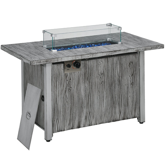 Outsunny 50,000 BTU Gas Fire Pit Table with Cover and Glass Screen - Grey