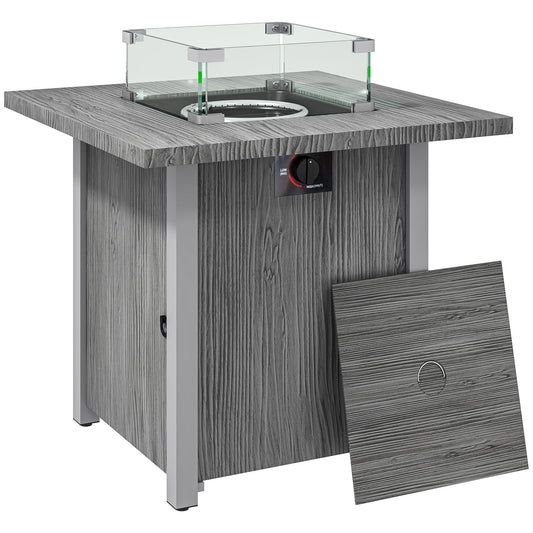 Outsunny 71cm 50,000 BTU Gas Fire Pit Table with Cover and Glass Screen - Grey
