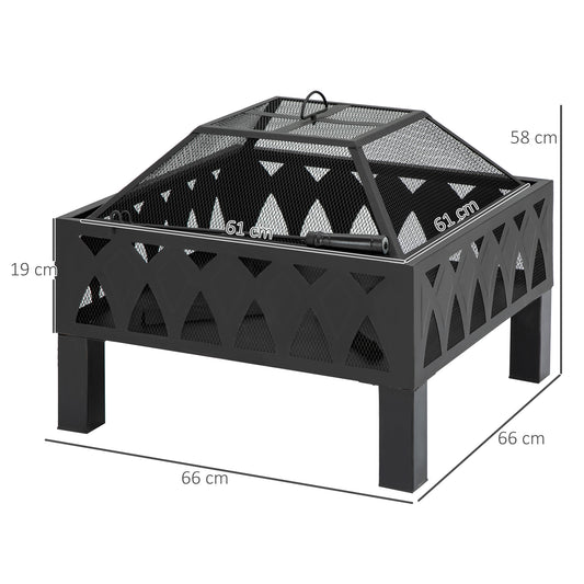 Outsunny Metal Wood-burning Fire Pit with Fire Poker - Black