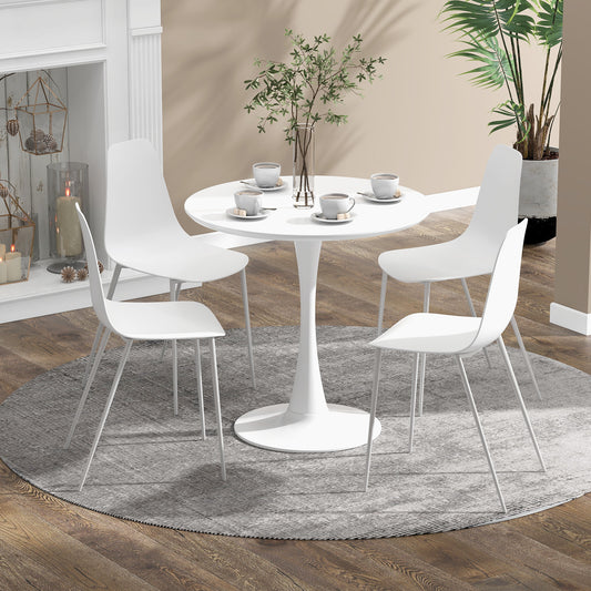 Armless Dining Chair Set of 4 Metal Leg Leisure Chair-White