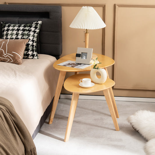 2 Pieces Nesting End Table Set for Living Room and Bedroom-Natural