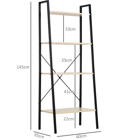 HOMCOM 4-Tier Vintage Ladder Shelf Bookcase Wood Storage Rack Stand Plants Display Black natural