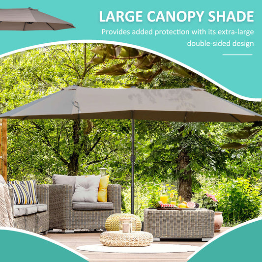 Outsunny Double Canopy Offset Parasol Umbrella Garden Shade with 12 Support Ribs Crank Handle Easy Lift Twin Canopy Brown