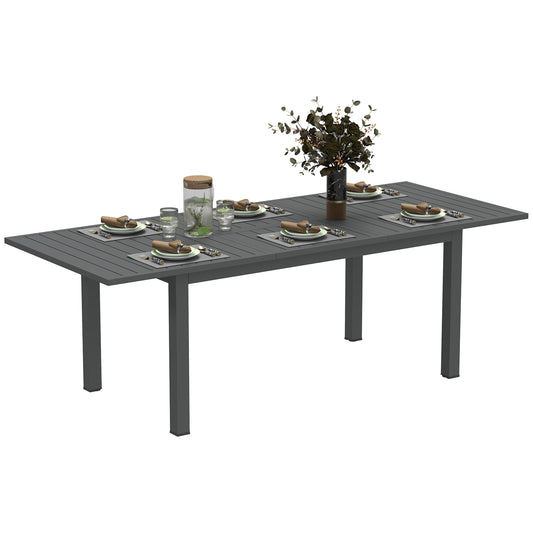 Outsunny Aluminium Extending Garden Table with Slatted Top for 6-8 Person, 160/220 x 90 x 73 cm, Grey