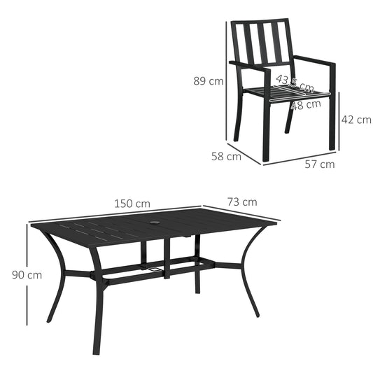 Outsunny Rectangle Garden Table with Slat Top, Steel Frame, Outdoor Table for 6 Person, 150 x 80 x 74 cm, Black