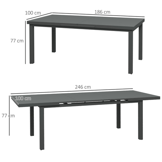 Outsunny Aluminium Garden Table for 6-8, Extending Outdoor Dining Table Rectangle for Lawn Balcony - Charcoal Grey