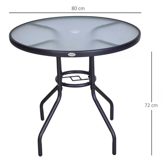 Outsunny Outdoor Round Dining Table Tempered Glass Top Steel Garden Table with Parasol Hole 80cm