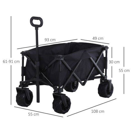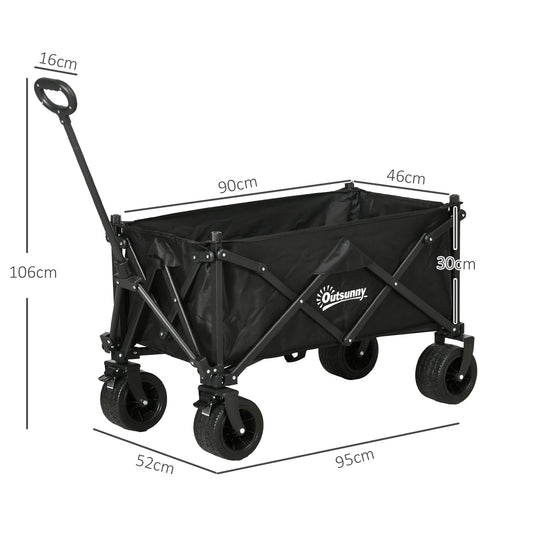 Outsunny Outdoor Folding Garden Trolley on Wheels, Capming Cargo Wagon Cart Trailer with Handle, Wheels for Beach Garden, Black