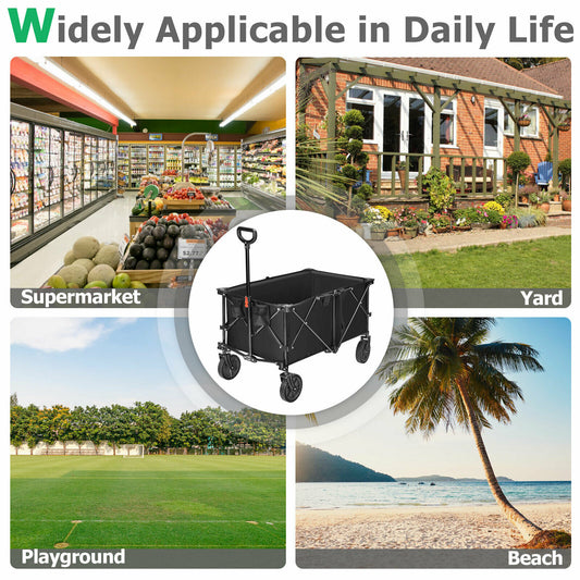 Folding Camping Wagon with Cup Holders and Adjustable Handle-Grey