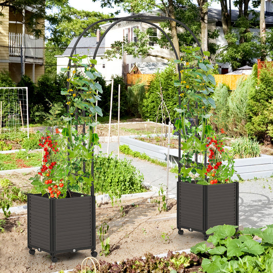 Arch Arbor Trellis with Planter Boxes, Self-Watering System and Wheels-Black