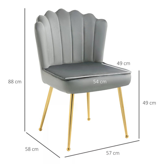 HOMCOM Velvet-Feel Shell Luxe Accent Chair, Glam Vanity Chair Makeup Seat, Home Bedroom Lounge with Metal Legs Comfort Padding, Grey