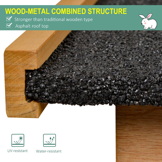 PawHut Wood-metal Guinea Pigs Hutches Elevated Pet House Bunny Cage with Slide-Out Tray Asphalt Openable Roof Lockable Door Outdoor