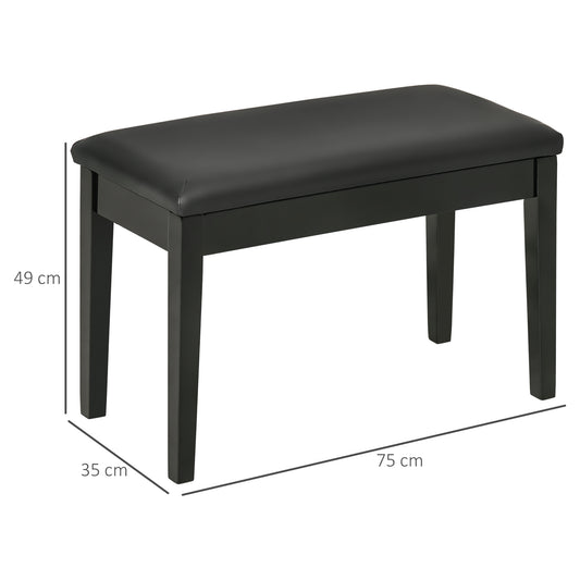 HOMCOM Classic Piano Bench Stool, PU Leather Padded Keyboard Stool with Rubber Wood Legs and Music Storage Compartment, Black