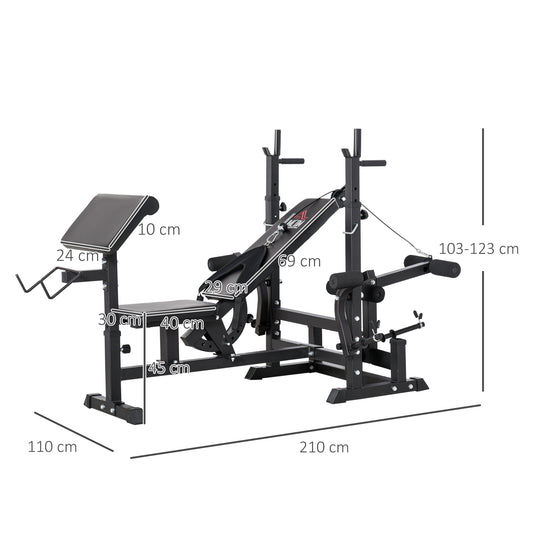 HOMCOM Multi-Exercise Full-Body Weight Rack with Bench Press, Leg Extension, Chest Fly Resistance Band & Preacher Curl