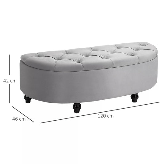 HOMCOM Semi-Circle Storage Ottoman Bench Tufted Upholstered Accent Seat Footrest Stool with Rubberwood Legs for Entryway & Bedroom, Grey