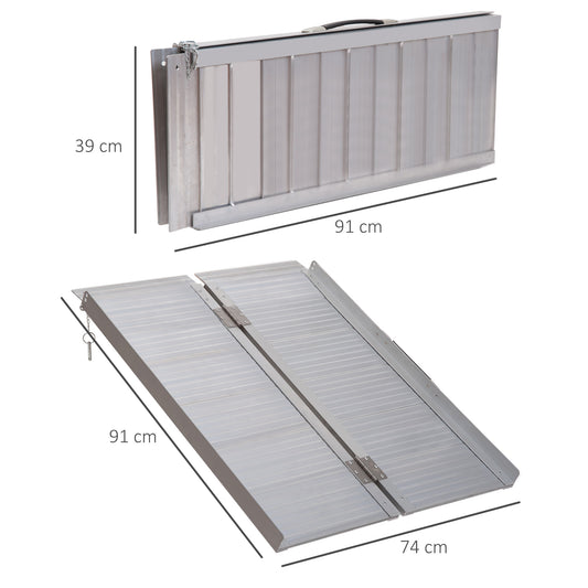 HOMCOM 3ft Folding Aluminum Wheelchair Ramp Scooter Portable Mobility Assist Suitcase Access Aid Disabled