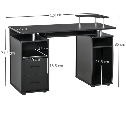 HOMCOM 120cm Computer Desk with Storage Shelves Drawers, Writing Table Study Workstation for Home Office, Black