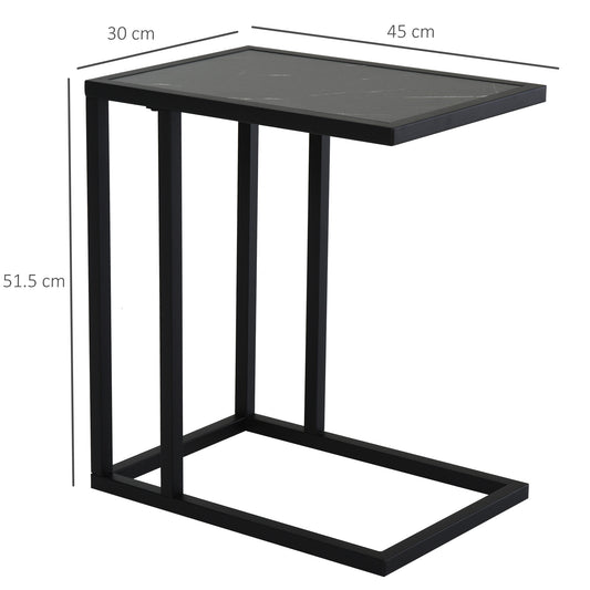 HOMCOM C Shape Side Table Marble-Effect Top with Metal Frame Space-Saving Home Furniture Bedroom Living Room Office Corner Desk Black White