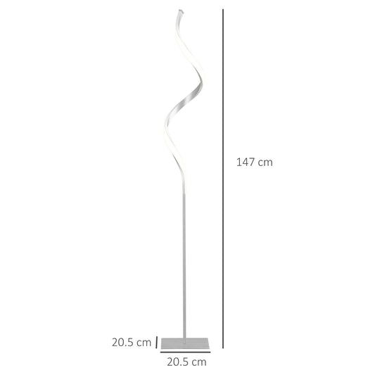 HOMCOM Dimmable Floor Lamp for Living Room, Modern Spiral Standing Lamp with 3 Adjustable Brightness and Square Base, Silver