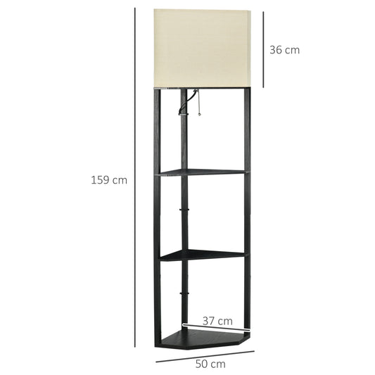 HOMCOM Corner Floor Lamp with Shelves, Modern Tall Standing Lamps for Living Room, Bedroom, with Pull Chain Switch (Bulb not Included), Black