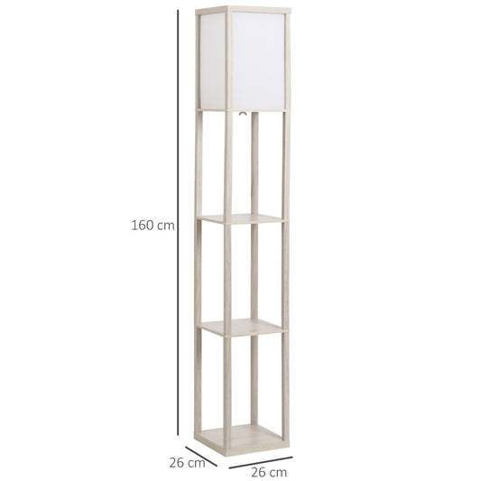 HOMCOM 4-Tier Floor Lamp, Floor Light with Storage Shelf, Reading Standing Lamp for Living Room, Bedroom, Kitchen, Dining Room, Office, Dorm, Oak