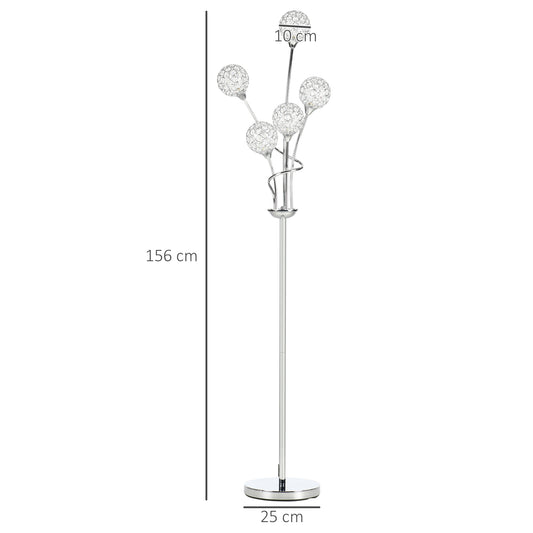 HOMCOM Crystal Floor Lamps for Living Room Bedroom with 5 Light, Modern Upright Standing Lamp, 34x25x156cm, Silver