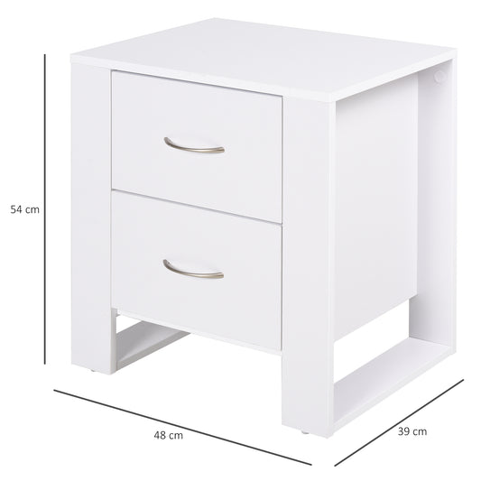 HOMCOM 2 Drawer Modern Boxy Bedside Table with Handles Elevated Base Melamine Coating Bedroom Storage Furniture Night Stand Organisation White