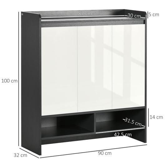 HOMCOM Modern Shoe Cabinet with High Gloss White Doors and Open Shelves, Hallway Shoe Cupboard Storage Organizer for 15 Pairs of Shoes, Grey