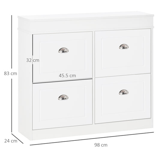 HOMCOM Shoe Cabinet with 4 Flip Drawers Wood Tipping Bucket Narrow Storage Cupboard with Adjustable Shelf Hall Organizer for Entrance Foyer White