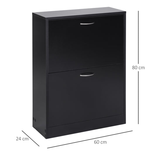 HOMCOM Shoe Cabinet Storage Cupboard 2-Tier Wood Tipping Bucket Modern Hall Organizer with Drawer Adjustable Shelf Large-Capacity Black