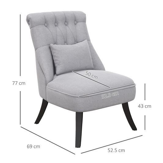 HOMCOM Fabric Single Sofa Dining Chair Tub Chair Upholstered with Pillow Solid Wood Leg Home Living Room Furniture Grey
